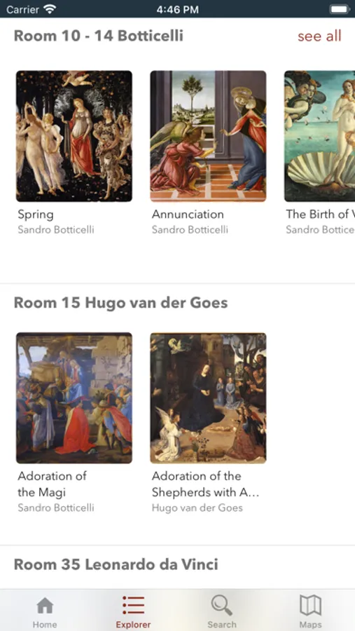 Discover points of interests through the exploration page and find them grouped by common features or locations.