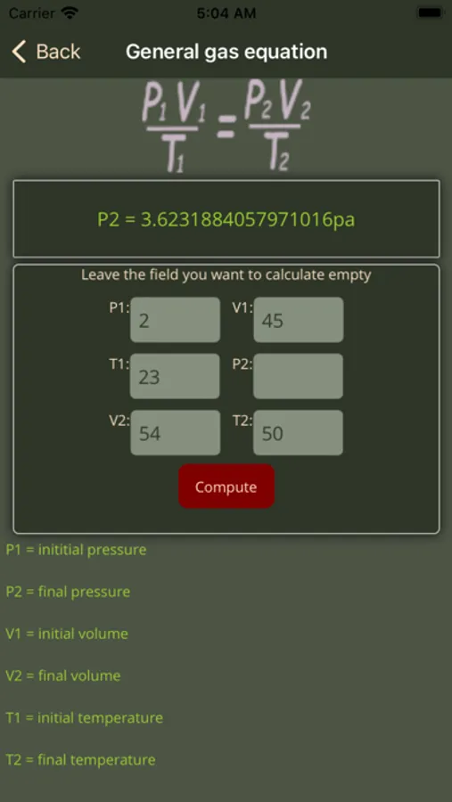 The app includes these calculations:-