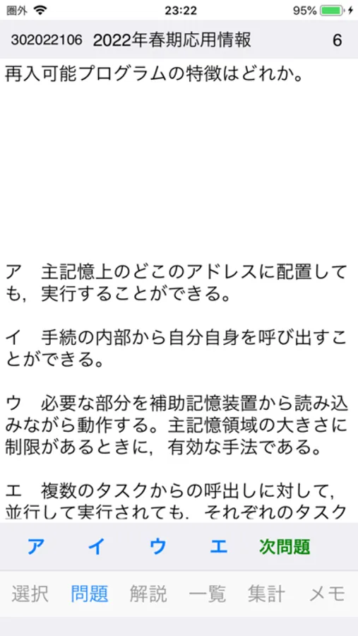 [問題]で、選択肢から、解答を選びます。解答を選ぶと[解説]画面に変わります。