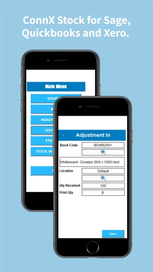 ConnX Stock is a simple to use add-on for Sage50, Xero and Quickbooks that allows you to fully control your stock using barcodes. Track your stock from goods receipt to despatch with options to pick by sales order or generate invoices directly in your account package.