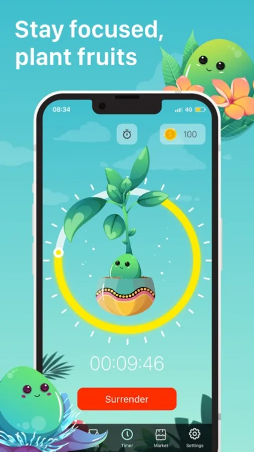 You plant a seed and set a time to complete your task. As you complete the task, the plant begins to grow. Once you complete the task, you get your grown plant placed on your island. If you can't help yourself to distracted on phone entertainment, your plant withers.