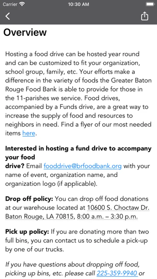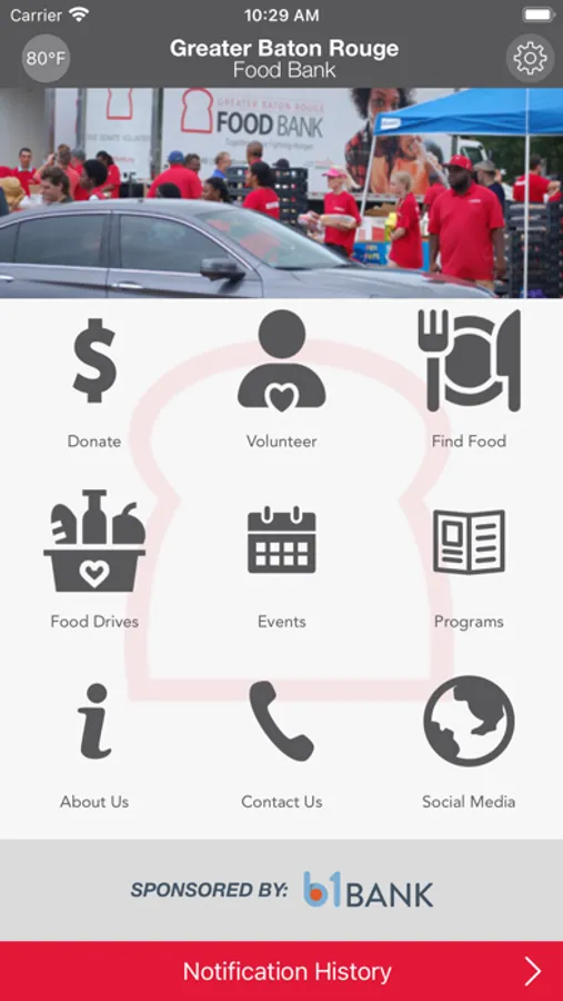 The Greater Baton Rouge Food Bank mobile application is an interactive app which will help improve our communication with the citizens of Greater Baton Rouge and surrounding area. The purpose of this app is to improve our ability to communicate with our citizens Information which will include, but not be limited to Push Notifications, Ways to volunteer, Donations and more. By empowering people through technology, the Greater Baton Rouge Food Bank will be able to better serve our communities.
