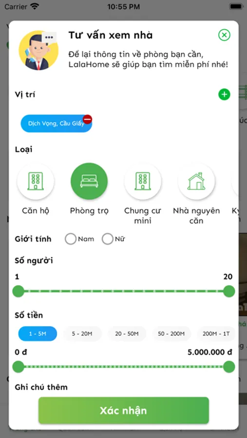 - Và đặc biệt là tính năng TƯ VẤN, bạn để lại yêu cầu, LalaHome sẽ tìm nhà, phòng cho thuê giúp bạn 1 cách miễn phí