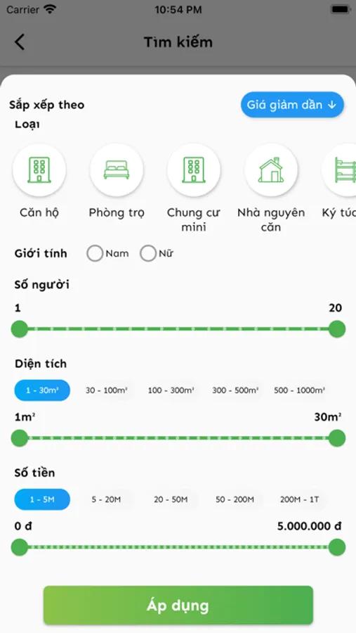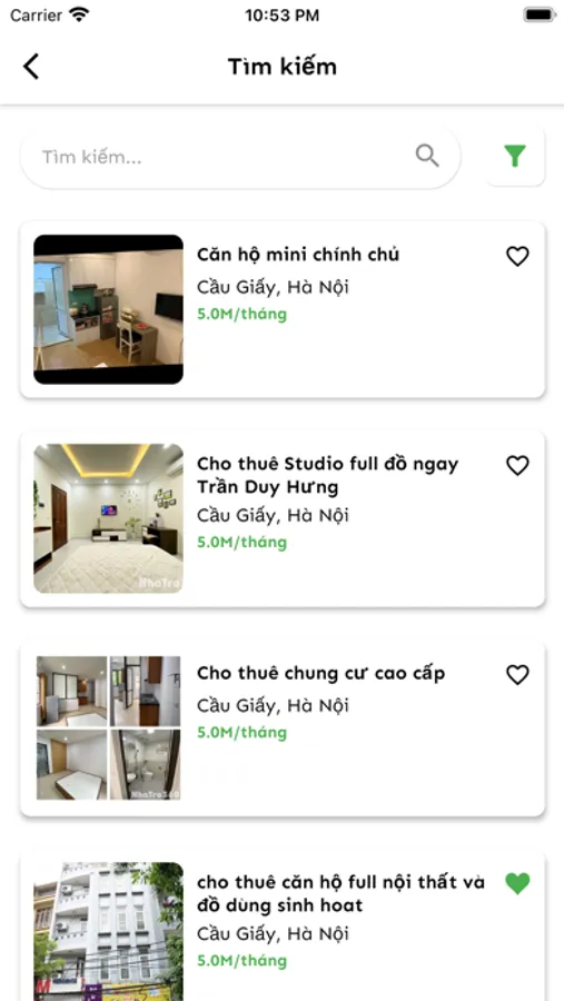 - Tìm kiếm theo các tiêu chí như vị trí, mức giá, diện tích...