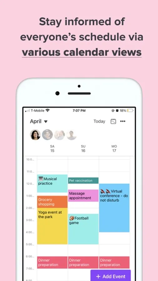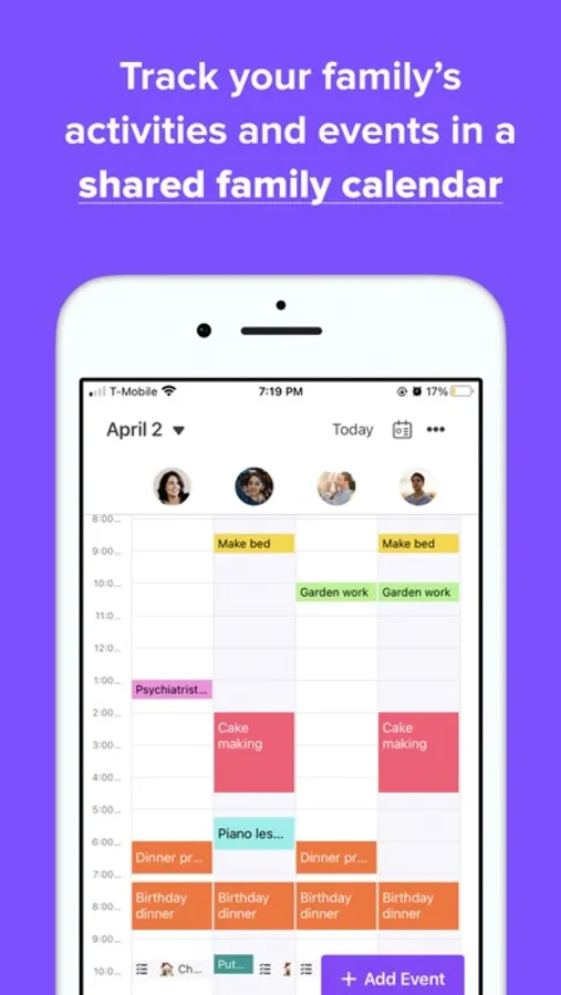 Calendars are a must to organize your daily life. You can import your iPhone calendar into the app and it is visible to you only. In the meantime, you can also export your family calendar and add it to external applications such as Google and Apple Calendar.