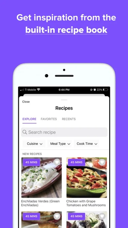 There are thousands of recipes in the application. You can search recipes not only by cook time and type of cuisine, but also with specific requirements, such as “Gluten free muffins without nuts.” Additionally, you can create and store original recipes and everyone in the family can access them.