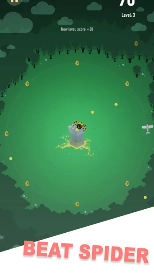 Fly over a giant spider who shot slimes in you.