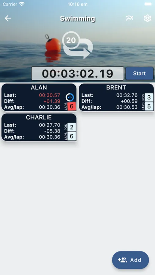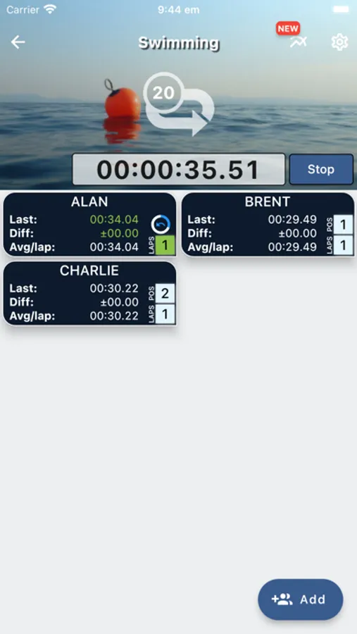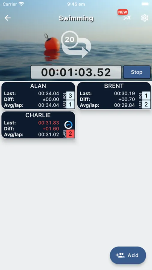 All coaches' best friend when it comes to manually keeping track of the lap times for unlimited number of runners, skaters, paddlers, drivers, swimmers - whatever you want to time.