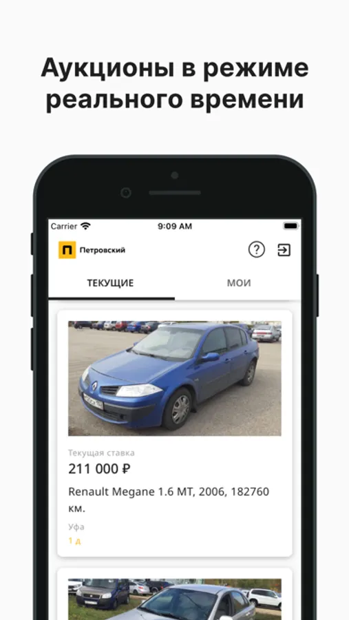 Приложение по продаже на аукционе автомобилей от компании Петровский