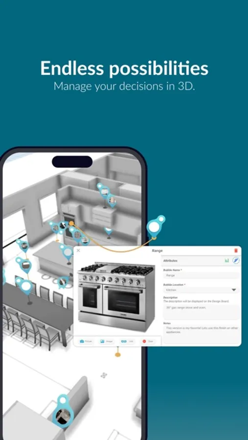 You take your planning and organizing to the next level by using "digital sticky notes" (bubbles) to further define finishes, products, notes, and budgets.