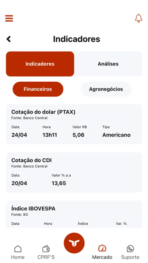 Através do app FinPec, você poderá abrir a sua conta, visualizar as oportunidades oferecidas pela FinPec, informativos e receber notícias sobre o mercado da pecuária brasileira, além de conhecer as novidades e as ações promocionais da FinPec.