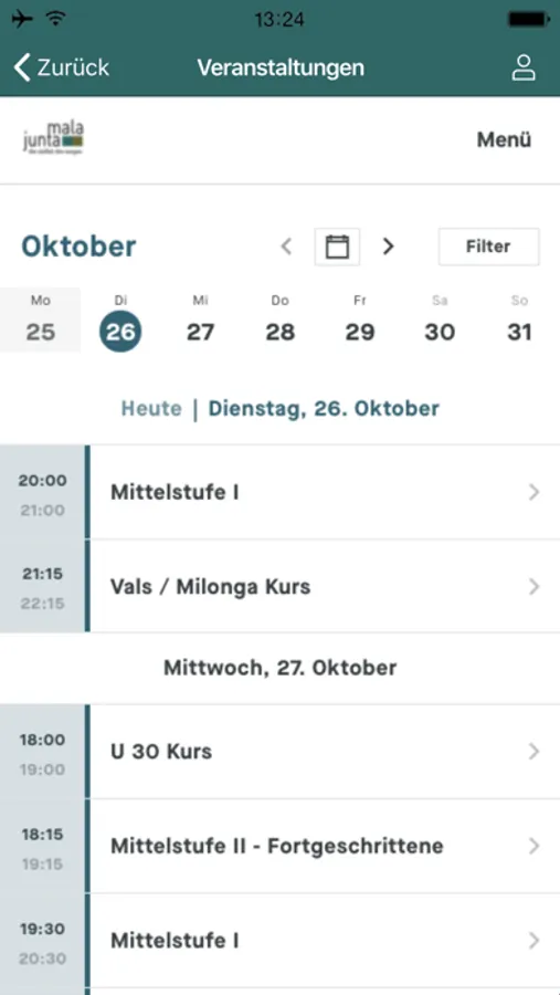 Online Buchungs-App der Tanzschule Mala Junta - die Vielfalt des Tango Argentino in Berlin
