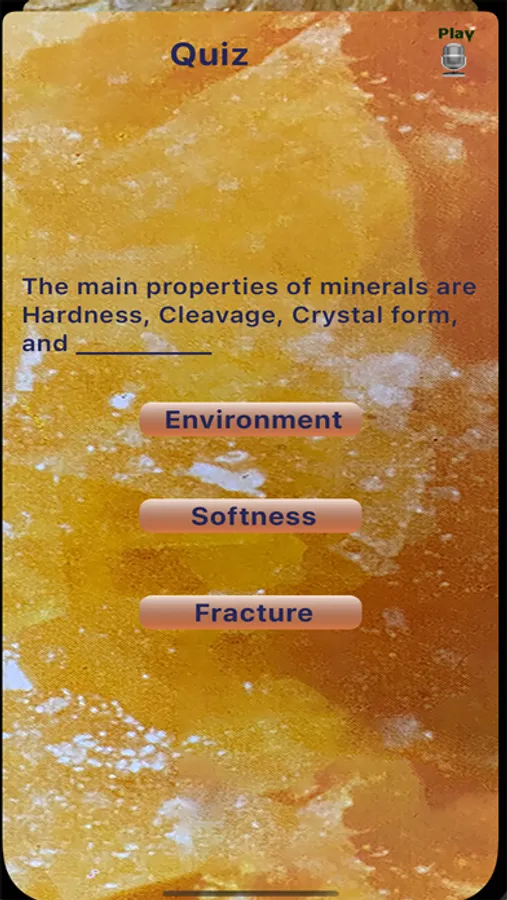 "Minerals & rocks" application describes various minerals, their properties and their formation. This app categorizes and sketches the difference between minerals and rocks, by taking a few examples to describe their formation. This app is educational and can be used as a reference to know important properties such as a mineral’s Hardness, Cleavage, Fracture, Crystal form, and Fluorescence. This app also has an option to pause and play the audio. There is also a quiz section with a set of questions, to review your knowledge on rocks.