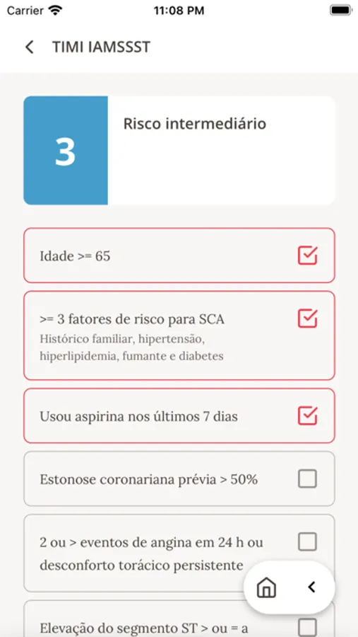 Este aplicativo destina-se apenas ao auxílio de condutas e orientações médicas, não devendo substituir a avaliação individual do paciente envolvido e nem servir como suporte para automedicação. Na presença de quaisquer sintomas sugestivos de síndrome coronariana ou dor torácica, devem ser procurados profissionais e/ou serviços de atendimento especializados. Os autores não se responsabilizam por condutas médicas e/ou interpretações adotadas após sua utilização.