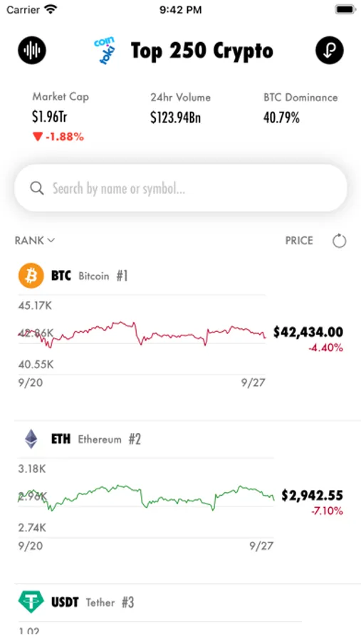 Sparkline charts to instantly analyze the crypto market!