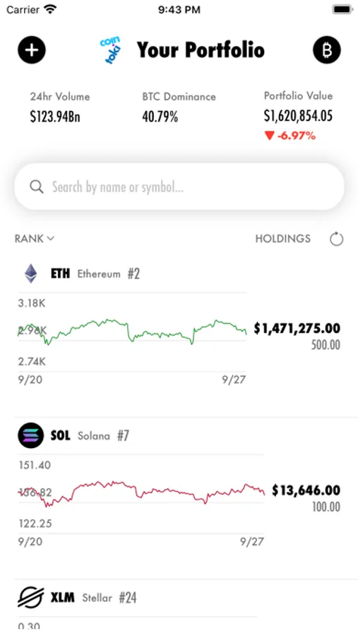 Cointoki Crypto shows you the top 250 cryptocurrencies with clear sparklines and larger charts.