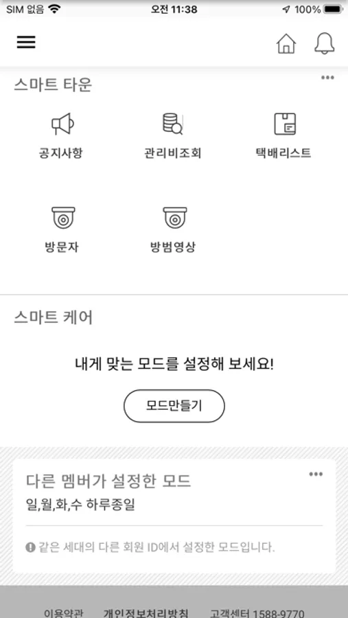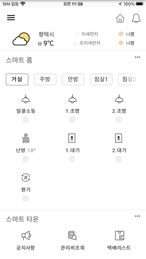 - 스마트 타운 : 관리비나 공지사항, 택배 등의 알림 사항을 한눈에