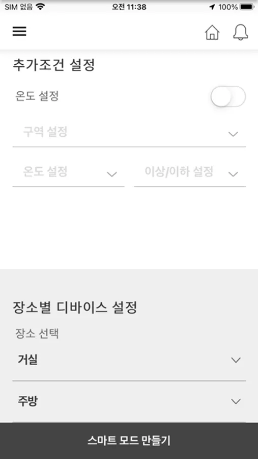 - 스마트 케어 : 실내 온도가 낮아지면 난방을 가동하거나, 저녁이면 자동으로 조명을 켜는 등, 내가 원하는 조건에 따른 맞춤형 자동제어 모드