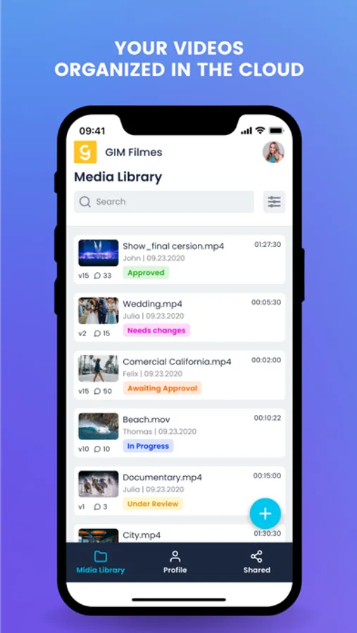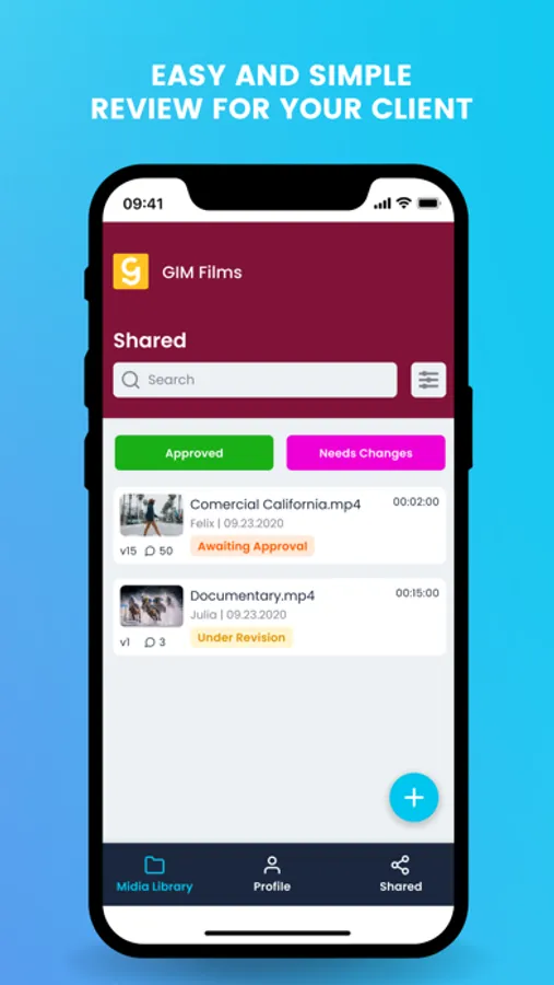 Add videos and other formats to your dedicated storage space, add team members for collaborative work and create links to share videos with your clients. Your clients can review and comment on the video in real-time, directly from their smartphones.