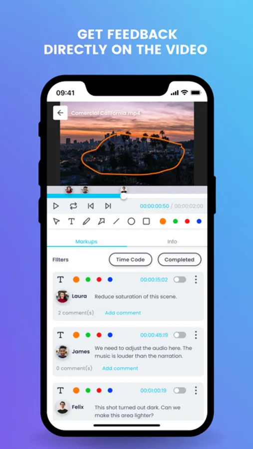 - Receive markups and comments, frame by frame, directly on the video.