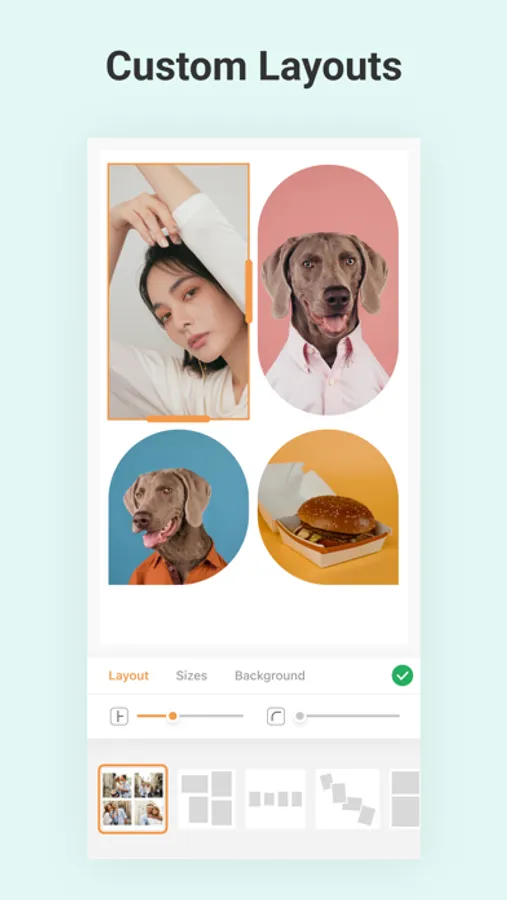 Whether you have a single image or 30, we have the perfect layout for you to create the best photo collage. Personalize your collage by adjusting border-radius, spacing, and photo size.