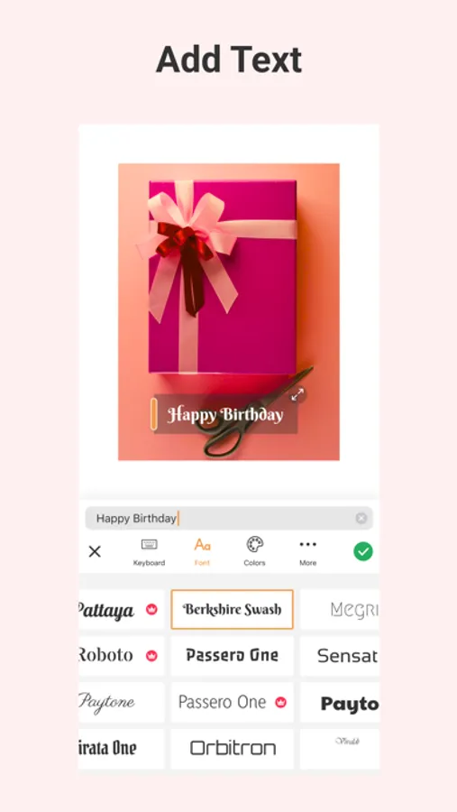 A collage is an expression. What's a better way to express yourself than words? Choose from hundreds of artistic font styles to bring your message to life. Adjust font color, shadows, background, and more!