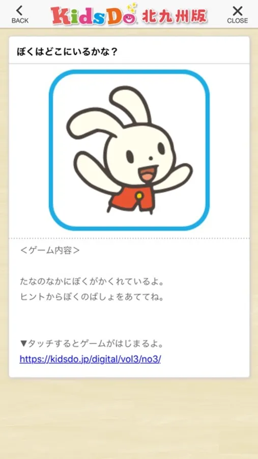福岡県北九州市内の幼稚園、保育園、子育て支援施設などを中心に配布されているフリーペーパー「KidsDo(キッズドゥ)」と連動して、知育ゲームの配信、親子で楽しめるイベントやお得なクーポン情報などを、このアプリを通してお届けします。