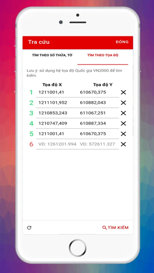 • Nhập thông tin toạ độ của thửa đất mà người dùng muốn tra cứu