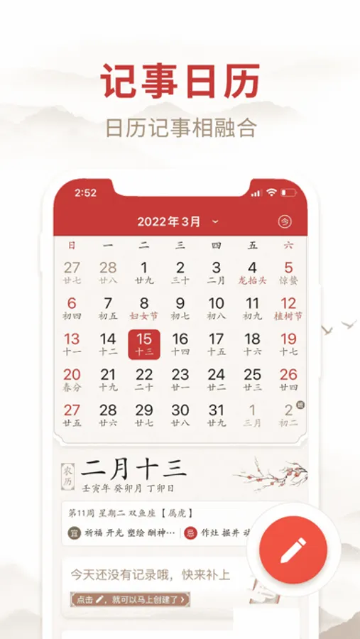 记事日历:日历记事相融合,让你随时掌握每一个重要日期,记录自己的心路历程;