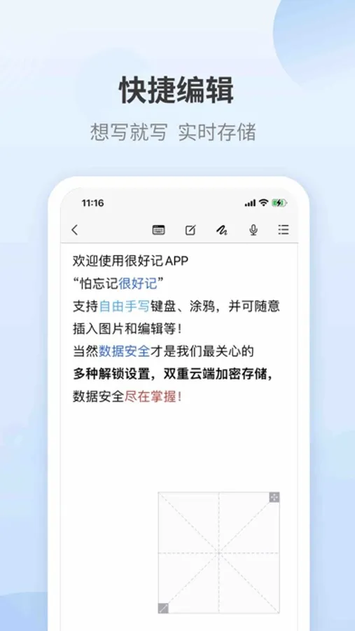 快捷编辑:支持自由手写、涂鸦、图片等,记录备忘更轻松;