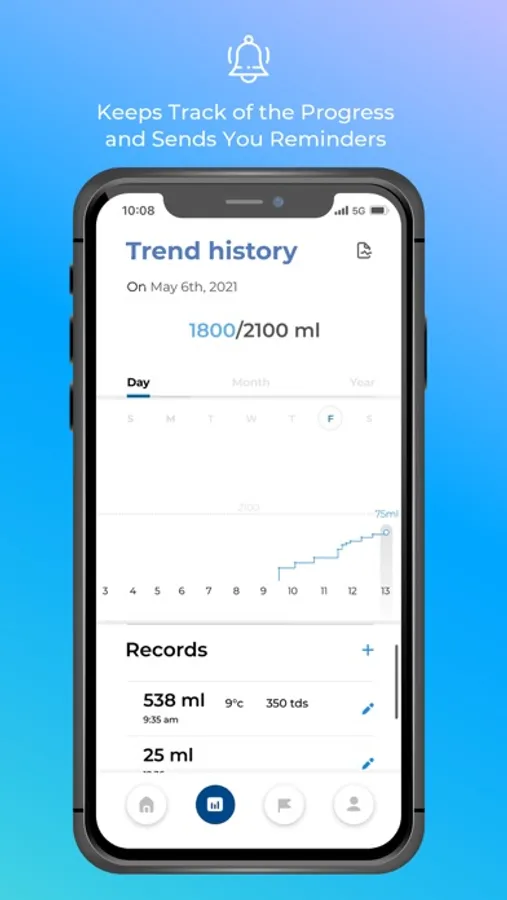 HISTORY & REPORTS: See your hydration progress over time in a daily, weekly, and monthly view. Export in easy to read data and understand your habits and improvement over time.