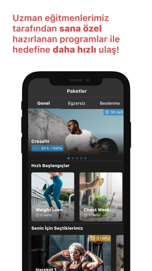 - Online olarak kişiye özel programlardan yararlanmak için 4 / 6 / 12 / 26 / 52 haftalık