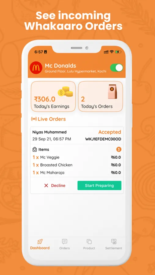 Established in 2019, Whakaaro is a leading food delivery service headquartered in Thalassery, Kerala. With over 10000 successful monthly deliveries, we are currently amongst the largest food delivery service in the Malabar region in terms of the number of successful deliveries executed daily. Currently, we are operational in two cities – Thalassery and Kannur. Apart from these, we have franchisees in Vadakara and Vadakkenchery. We accept delivery orders through phone calls. We have dedicated order handling executives to cater to the customer needs in a selection of a variety of cuisines and recipes. We focus on smooth customer experience and timely deliveries. We have a consistent track record in maintaining good customer and restaurant relations, with over 10000 active users and 100 restaurant partners