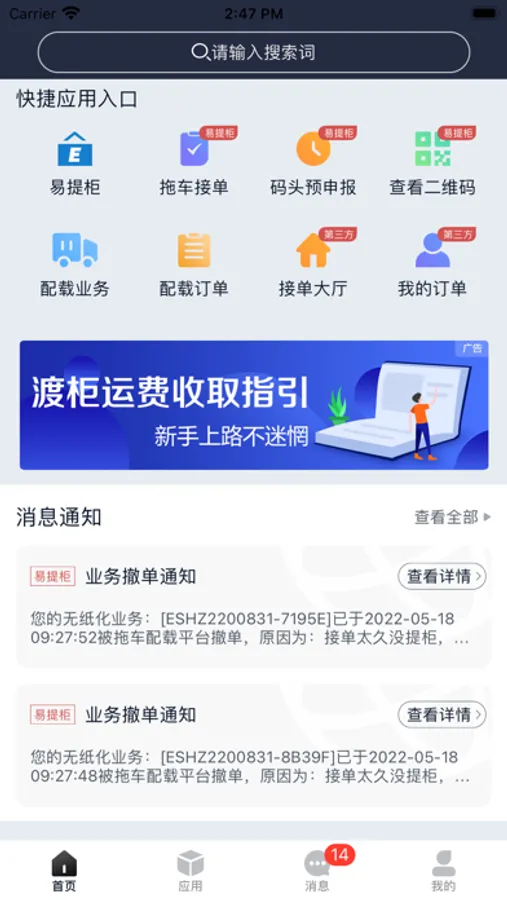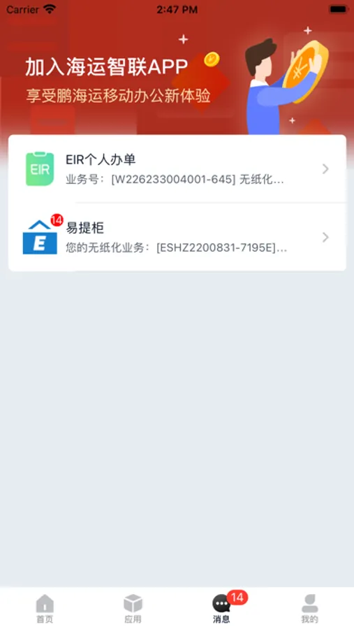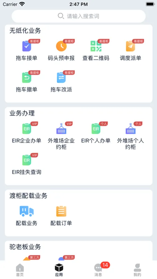 海运智联APP为深圳市鹏海运电子数据交换有限公司(简称鹏海运)自主研发的一款服务海运物流服务行业的移动端产品。 海运智联APP服务的用户群体包括但不限于货主、货代、拖车企业、拖车司机、报关行、船公司、码头、堆场等; 海运智联APP服务的内容包括但不限于公共服务(如无纸化操作等)、基础类的操作服务(如EIR办单、外堆场约柜等)、用户群体之间的服务委托履行管理(如渡柜配载、重柜配载等)等增值服务。