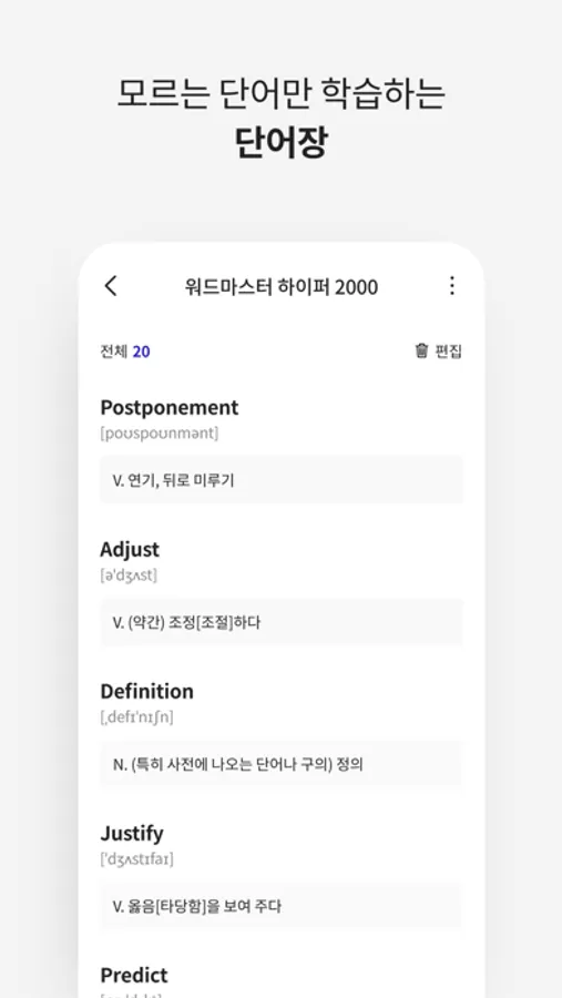 안 외워지는 단어는 단어장에 추가하여 따로 공부하세요.