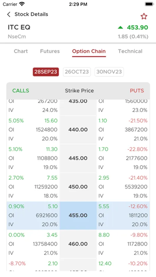 • Enjoy Option Chain, Option Greeks, OI and IV data in Option Chain