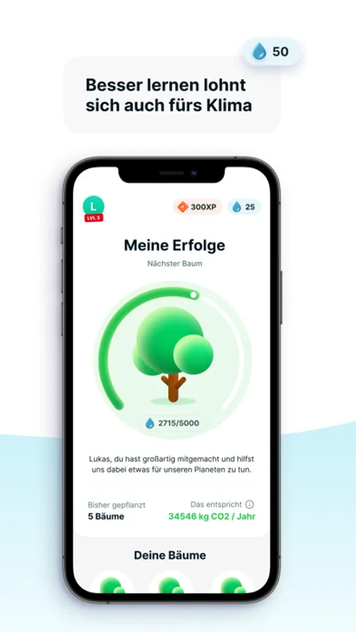 Der Klimawandel ist eine Herausforderung, der wir uns gemeinsam mit Dir stellen möchten. Beim Lernen mit der App sammelst du Punkte, mit denen wir für Dich Bäume im Studienkreis-Wald pflanzen. Je mehr Bäume, desto größer der CO2-Spareffekt. Nutze die App und leiste so einen Beitrag zur Klimarettung!