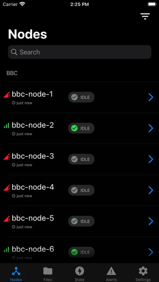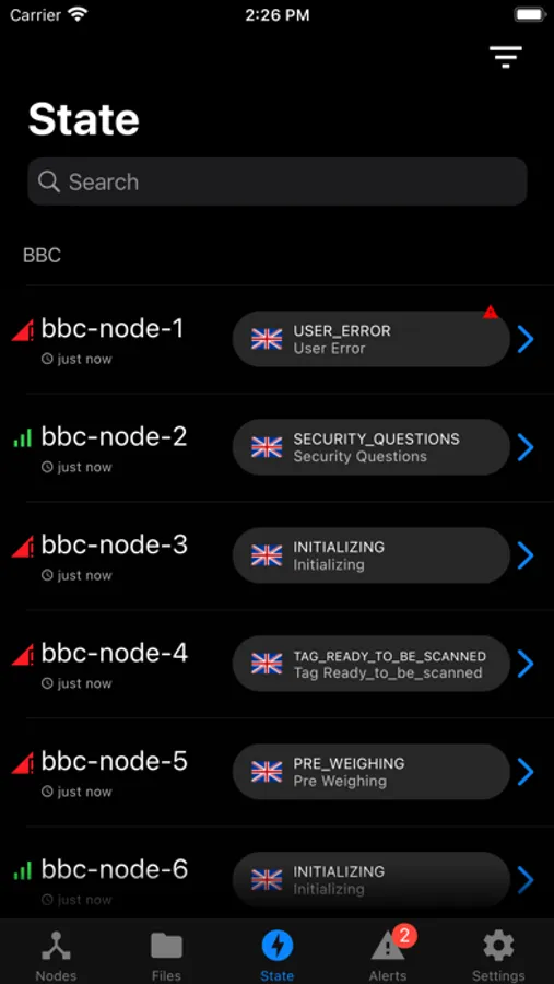 The app shows online status, alarm messages and their current state. You can capture the screen of a device and see exactly the same picture as the passenger. Software updates can also be performed remotely.
