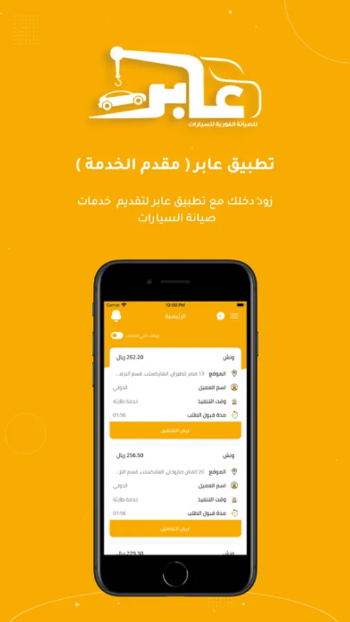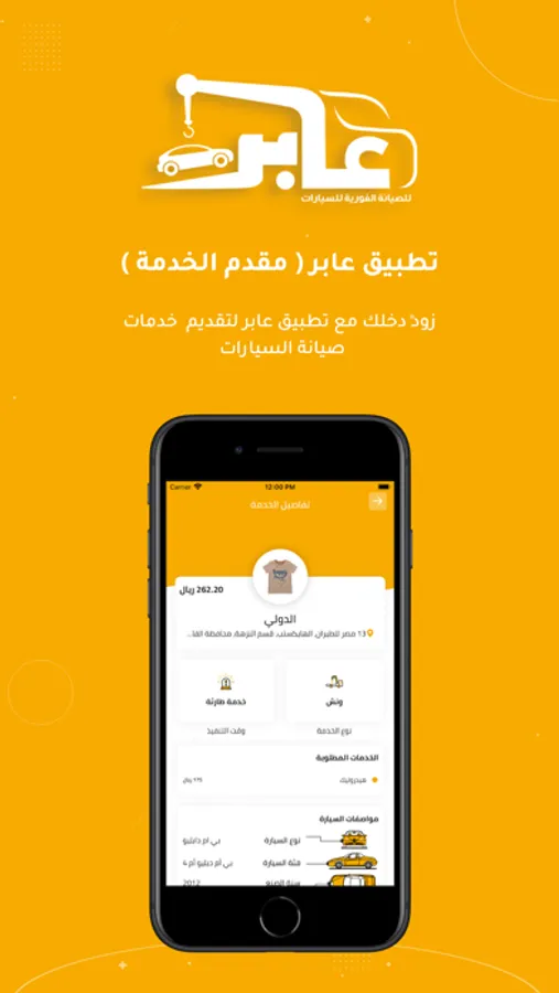 - لو انت فني او عندك مركز صيانة سيارات انضم معنا وسجل في التطبيق كمقدم خدمة وابدأ في استقبال الطلبات وزيادة دخل منشأتك