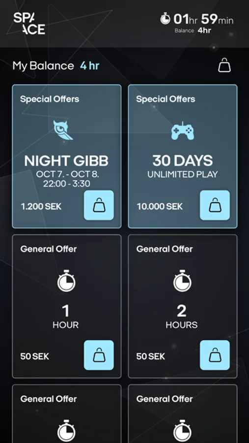 Check in frequently in the Space Gaming App to take part of exciting events and offers that happens at Space