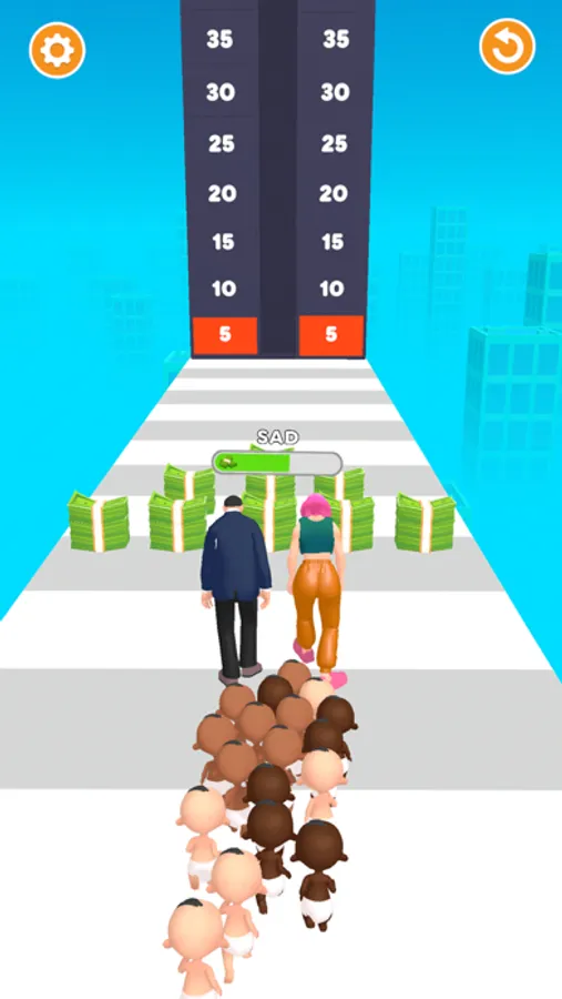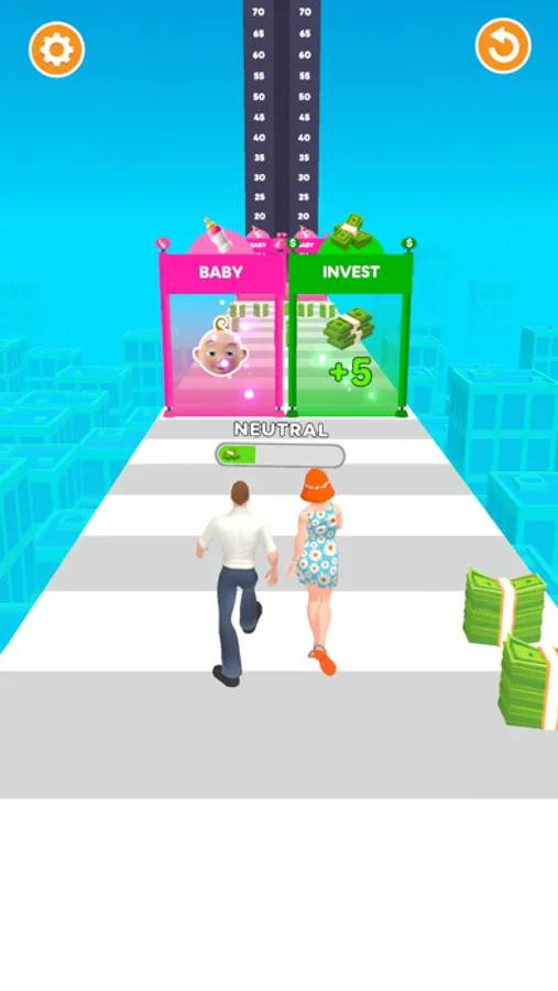 Are you going to invest your life's money have a baby? Having kids can help you overcome some obstacles, but it can also be a problem. Be careful and try to reach the final with as many children as possible.