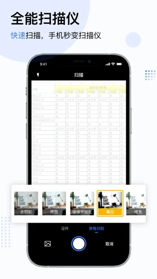 -采用先进的快速算法,轻松扫描应用程序使用先进的图像处理算法去除阴影,修正图像畸变,使您的扫描尽可能可读。