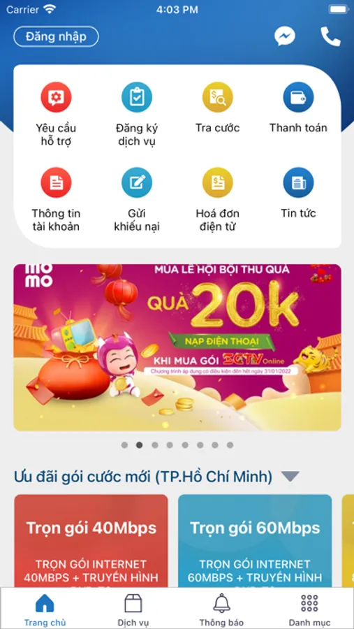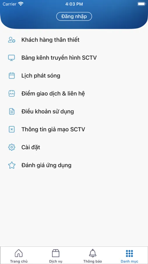 Ứng dụng chăm sóc khách hàng - dành cho khách hàng của truyền hình cáp SCTV