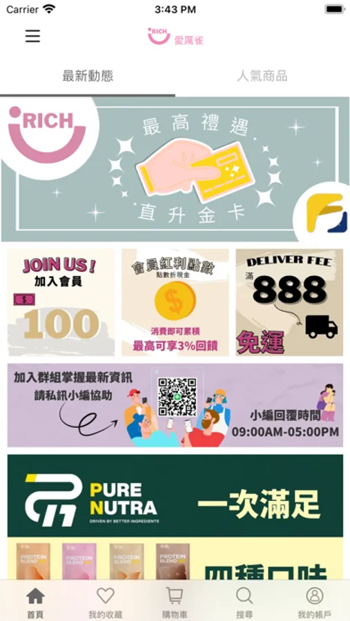 輕鬆購物就逛iRICH、累積/抵點數、領取好康!