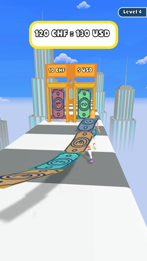Look at the exchange rate and choose the biggest coin, collect the coin and use it to rise