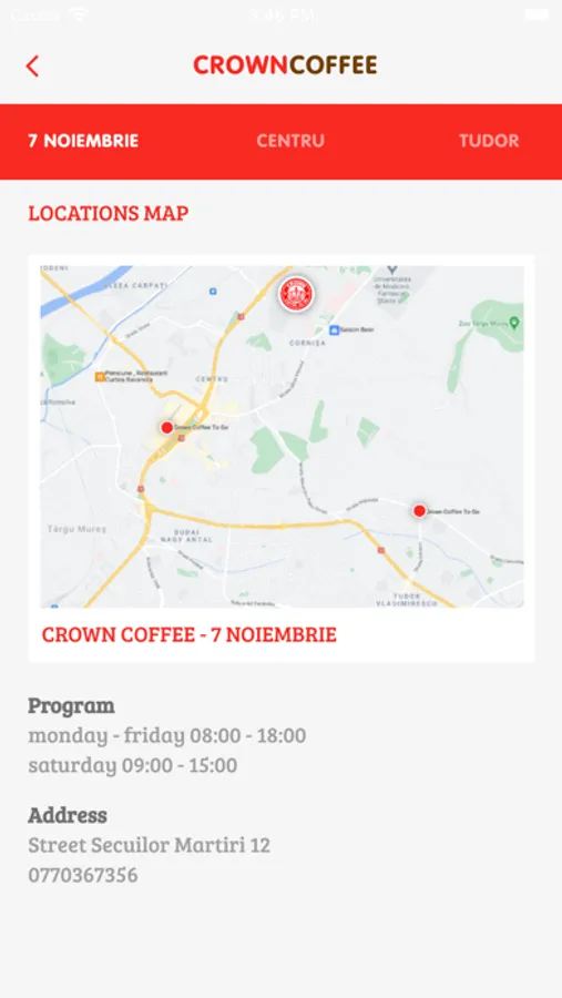 Crown Coffee “To Go” vine în întampinarea vieții cotidiene aglomerate în care problemaprincipală este lipsa timpului.Ne adresăm atât iubitorilor de cafea, cât și celor care doresc să savureze o ciocolată caldă sau unceai de calitate în masină, la birou sau în timp ce își fac cumparaturile.Cu toții am savurat o cafeafie ea poate prea amară sau prea diluată, astfel că noi aducem pe piața din Târgu Mureș o cafeade specialitate proaspăt prajită 100% Arabica de către prajitoria proprie situată în Târgu Mureș,cartierul Tudor Vladimirescu.Crown Coffee este o afacere 100% autohtonă, asigurând o cafea de calitate superioară fie că esteun simplu espresso sau un latte aromat.