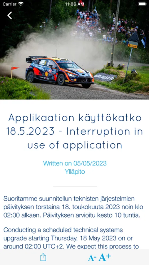 Jokaisen rallifanin ykköstuote, Secto Automotive Rally Finlandin mobiilisovellus tarjoaa sinulle tärkeää tietoa erikoiskokeista, viestintää katselualueista ja liikenteestä sekä toimii ostettujen rallipassien rekisteröintikanavana. Sovelluksella saat suunniteltua oman rallikokemuksesi ja saat tietoa valitsemiltasi erikoiskokeilta sekä rallitarjouksia yhteistyökumppaneiltamme. Tämä sovellus kannattaa pitää mukana koko rallin ajan!