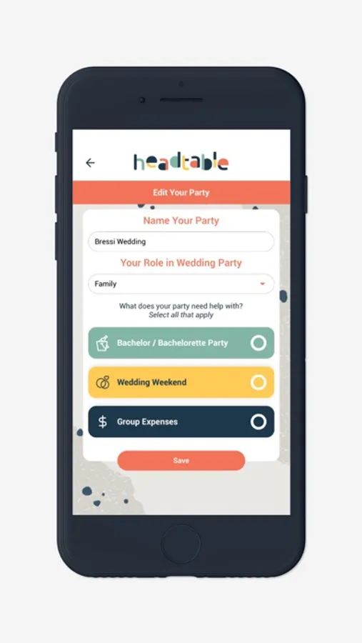 HeadTable is the best app for wedding parties to organize, coordinate and budget in one space. From endless group chats to holding the bill for a large expense, HeadTable addresses the most frustrating aspects of being part of a wedding party so that you can skip the stress and enjoy the parties. Consider HeadTable your virtual coordinator that allows you to connect with other wedding party members, split expenses, chat with the group, view event details and share updates quickly. HeadTable gets everyone on the same page so you can party like you planned it with our key features...