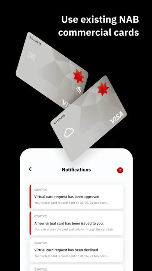 To use this app you need to have a NAB commercial credit card and have applied for NAB Expense Control. To find out more visit nab.com.au/expcontrol