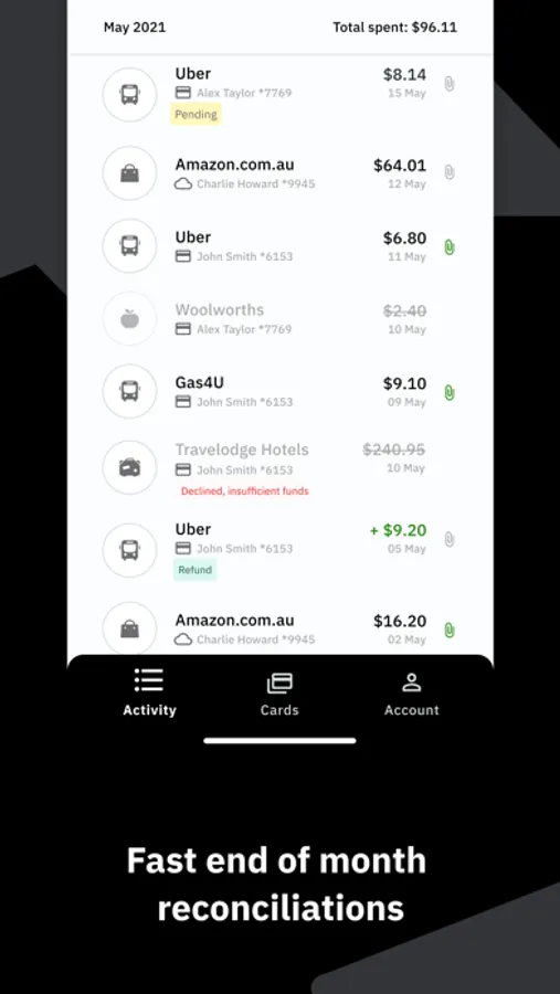 • View a dashboard of all of your NAB business credit card account expenses and transactions